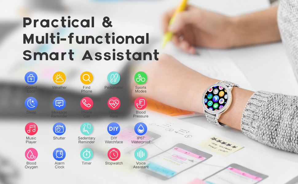 The unique dial design is adorned with exquisite diamonds, adding a touch of luxury to your wrist. Fashion and extravagance blend seamlessly, making a perfect fusion. With every raise of your hand, you will be captivated by the sparkling diamonds on the dial. Whether it's a gala, a social gathering, or your everyday attire, this ladies smart watch will become your fashion focal point, emanating a distinct charm.